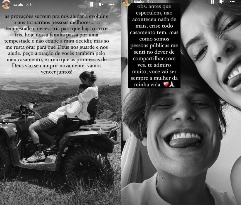 Saulo Poncio chamou atenção dos seguidores na madrugada deste Natal, 25, ao fazer posts expondo que ele e Gabi Brandt estão em crise no casamento.