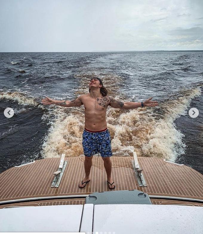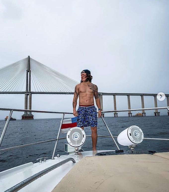 O youtuber, que esteve em Manacapuru nessa sexta, ostentou a barriga sarada em um iate de luxo durante um passeio pelo Rio Negro neste sábado.