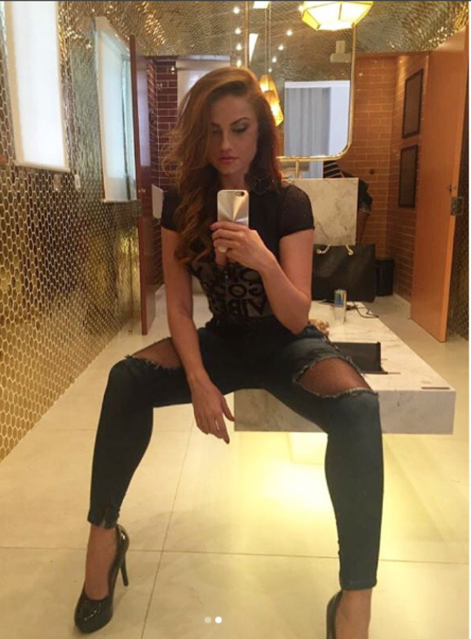 No primeiro clique, Ellen fez uma selfie e ela aparece usando uma camisa toda em renda, além de abusar com um decote imenso que destacou seus seios enormes. Já na segunda foto, a cintura finíssima de Ellen Rocche chamou a atenção dos fãs.