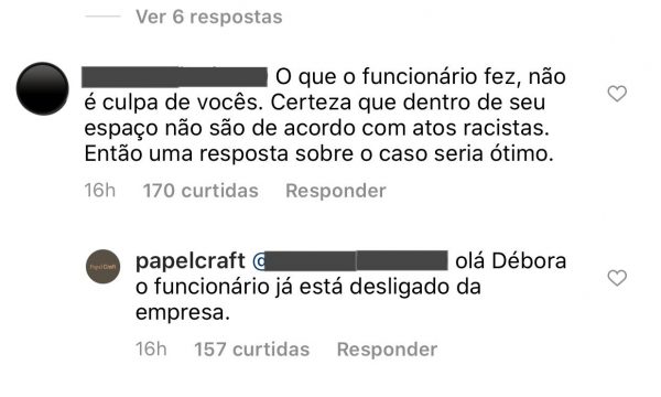 Internautas fizeram o vídeo viralizar, identificaram a dupla e cobraram ações das empresas que os empregavam. A loja Paper Craft , na Gávea, informou que desligou o homem do seu quadro de funcionários. Internautas afirmam que o rapaz é filho da dona da loja.