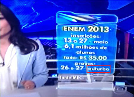 Na noite de ontem, Patrícia apresentava informações sobre as inscrições para o Enem, quando a palavra "outubro" apareceu "outurbo" na telinha. Sem perceber, o jornal seguiu com as notícias e gerou piada na internet.