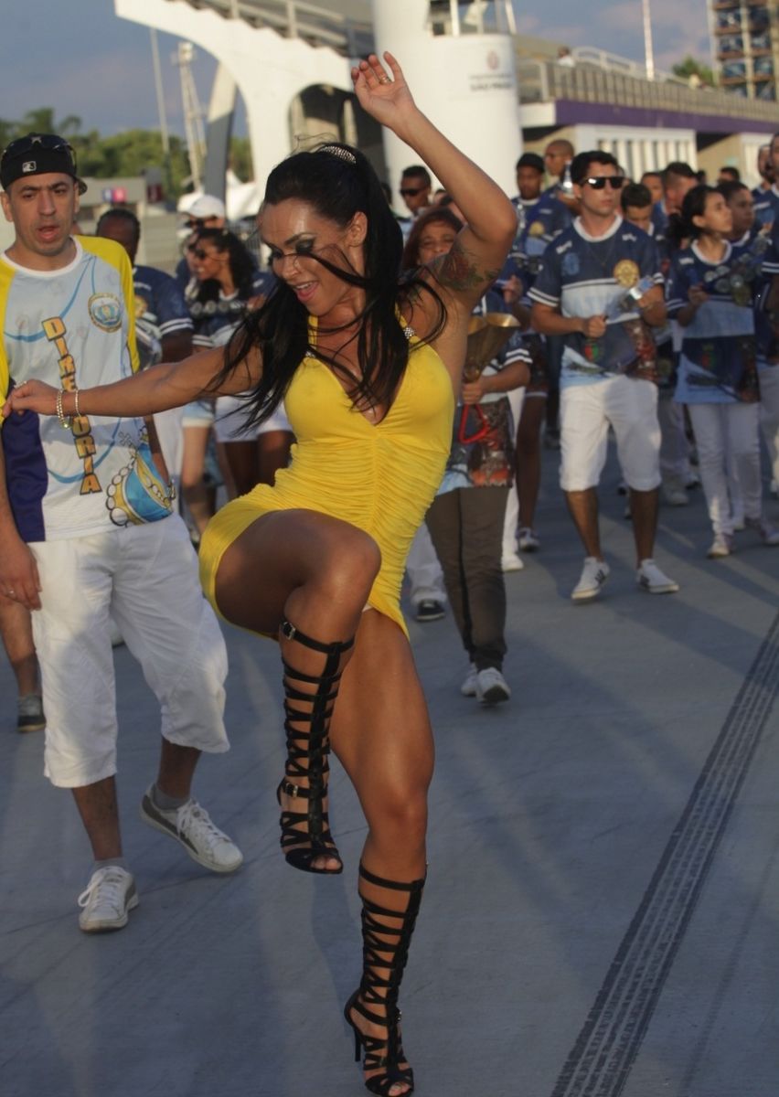 Fabiana Frota pagou calcinha enquanto sambava no ensaio técnico das Escolas de Samba de São Paulo. A esposa de Alexandre Frota não se importou em usar um vestido curtíssimo e decotado, e contou também com a presença do marido e do filho no local.