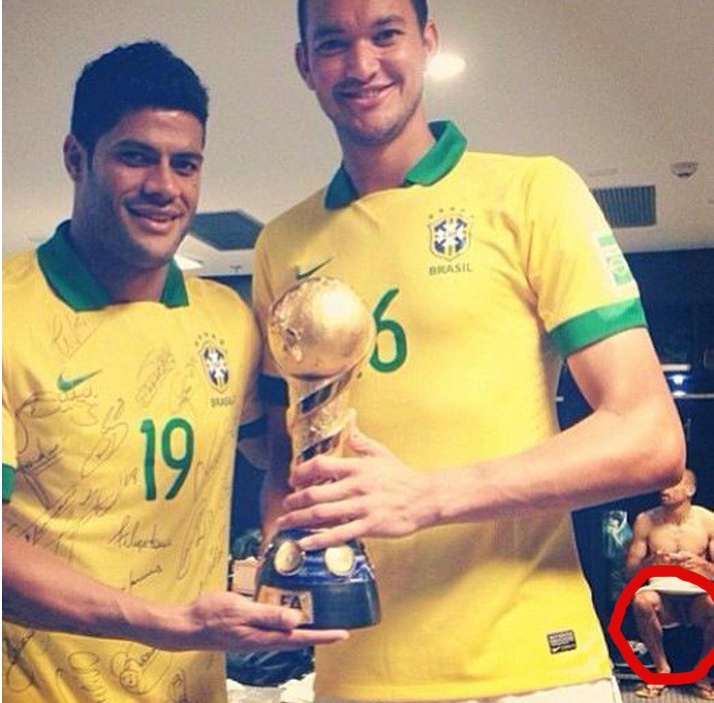 Esposa do goleiro reserva da seleção brasileira Diego Cavalieri, Daniela Cavalieri não se intimidou ao aproveitar a carona da fama do amado e reproduzir a foto em que o jogador foi flagrado nu no fundo da foto que o jogador Hulk publicou no vestiário, logo após o jogo que deu ao Brasil a vitória na Copa das Confederações.