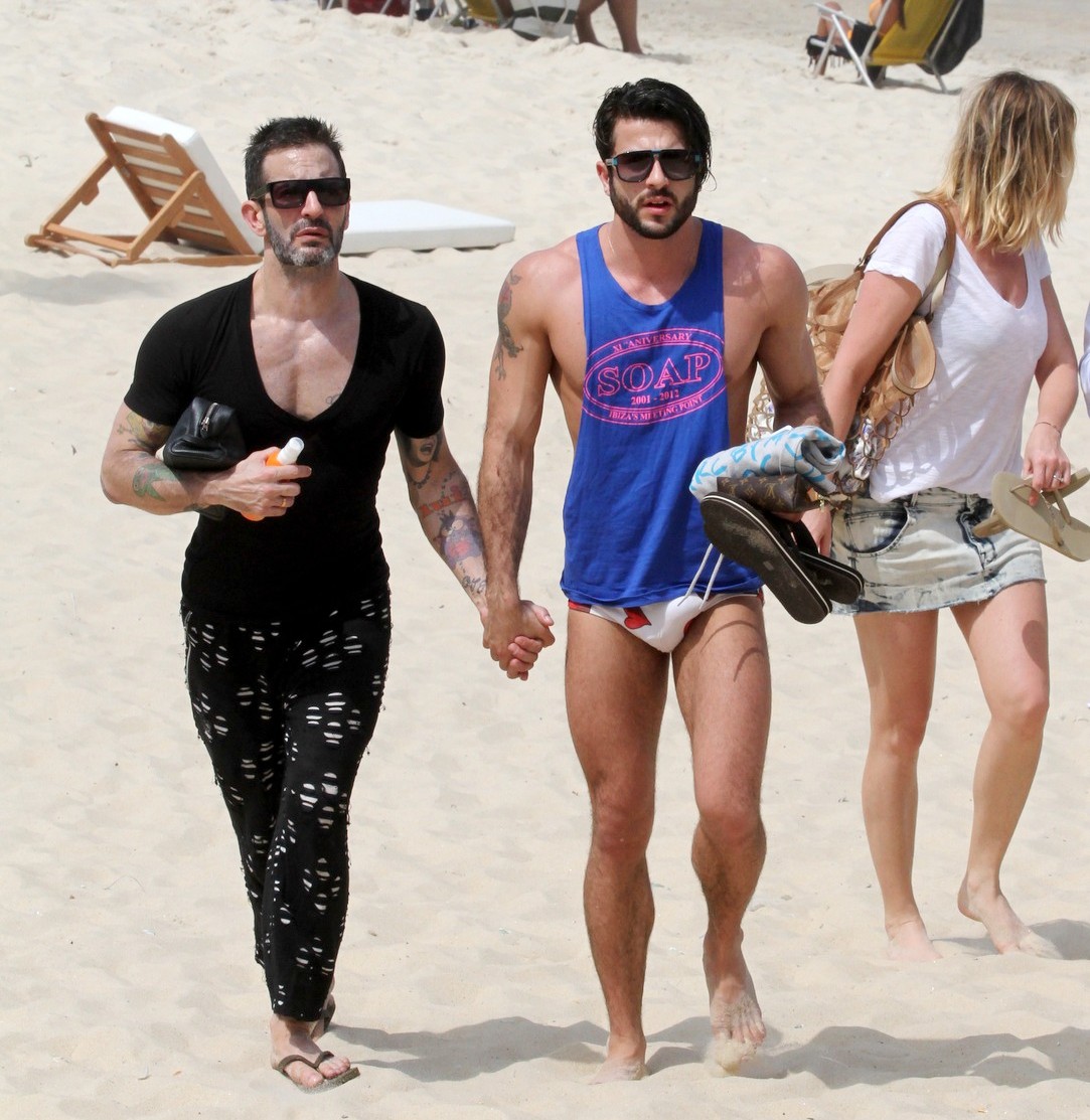 Estilista Marc Jacobs e namorado brasileiro beijam muito na praia