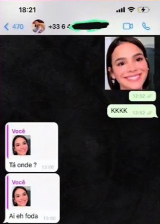 O print mostra que a então amante usou um sticker da atriz durante a conversa.