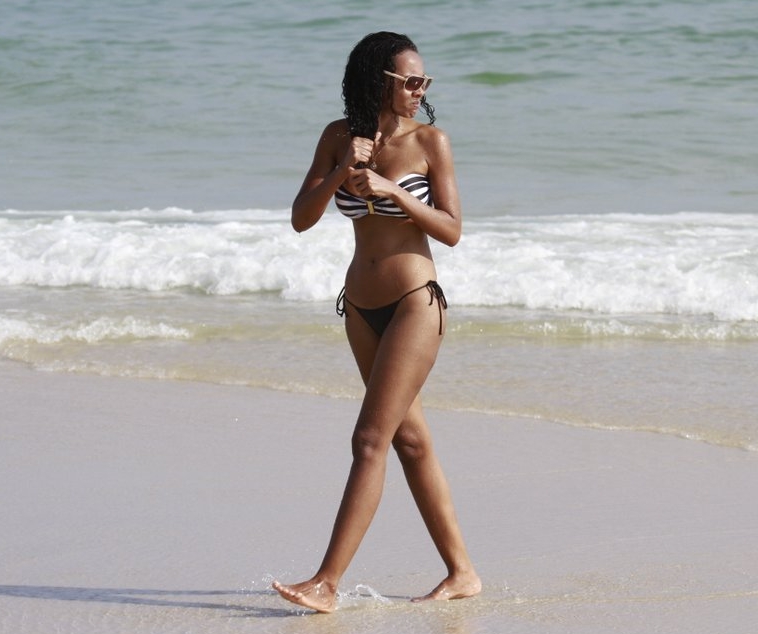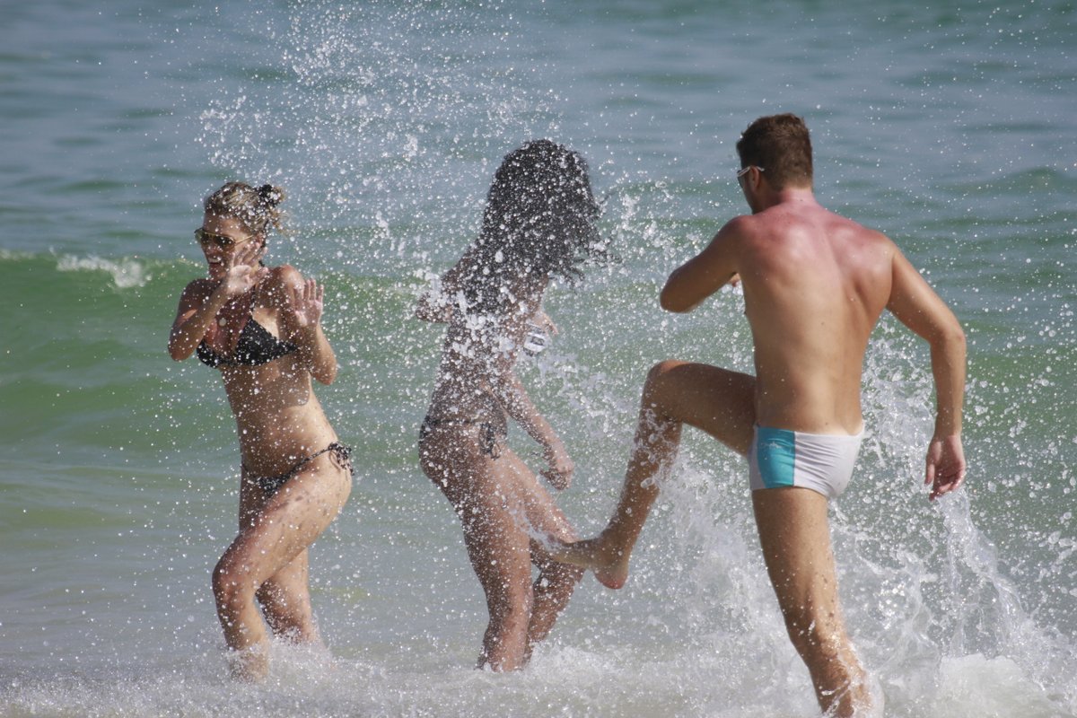 Primeira eliminada do Big Brother Brasil 2013, Aline Mattos resolveu relaxar depois da semana do carnaval. Nesta terça-feira (19), a morena curtiu a praia com os amigos e exibiu o corpaço em dia.