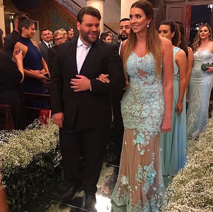 Entre convidados estavam as também ex-bbbs Tamires Peloso, que foi madrinha de Amanda, e Talita Araújo.