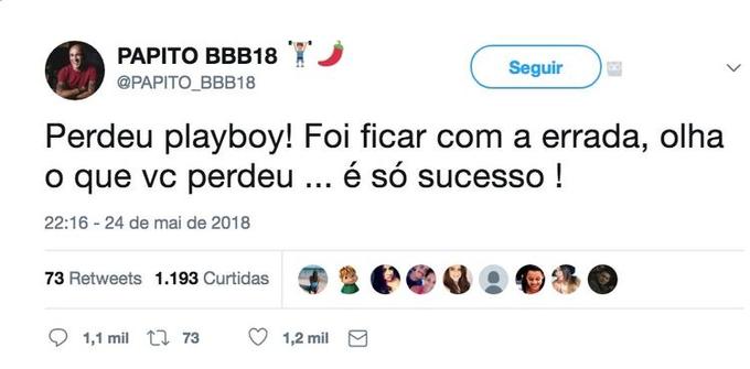 “Perdeu playboy! Foi ficar com a errada, olha o que você perdeu… É só sucesso”, escreveu Ayrton sem citar nomes, mas para os fãs claramente se referindo a Ana Clara, que tem bombado nas redes sociais. O pai da “Família Lima” acabou sendo bastante criticado pelos fãs de Paula.