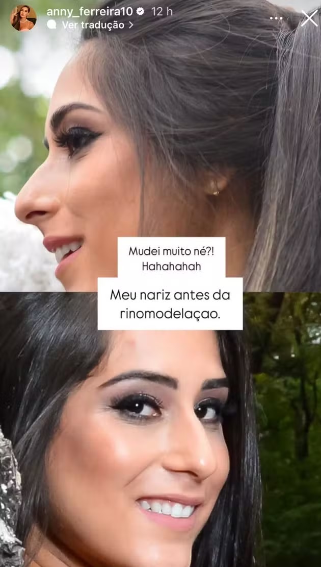 Ela também revelou que na época do BBB já havia feito rinomodelação com ácido hialurônico, procedimento que precisa ser retocado a cada seis meses, e compartilhou fotos do antes e depois.