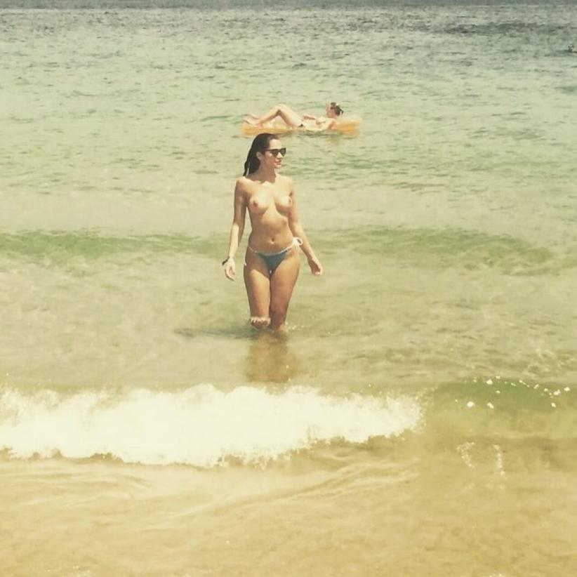 Maria Melilo compartilhou com os seus seguidores do Instagram uma foto em que aparece apenas com a calcinha do biquíni, em uma praia em Ibiza, na Espanha. "topless em Ibiza", escreveu a ex-BBB na legenda da imagem.