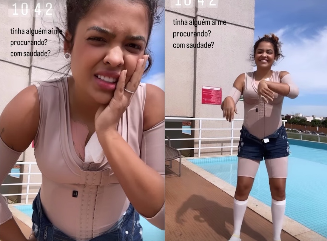 Na tarde de hoje, Paula já apareceu com a cirurgia feita, usando meia, sutiã e body compressivos, fazendo uma dancinha no Instagram.