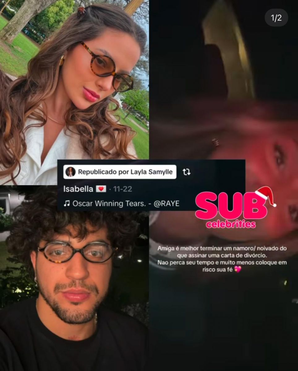 Seguidores notaram que Layla curtiu comentários sugestivos em sua última publicação no Instagram e compartilhou no Tiktok um vídeo em que dizia: "Amiga é melhor terminar um namoro/noivado do que assinar uma carta de divórcio. Não perca seu tempo e muito menos coloque em risco sua fé".