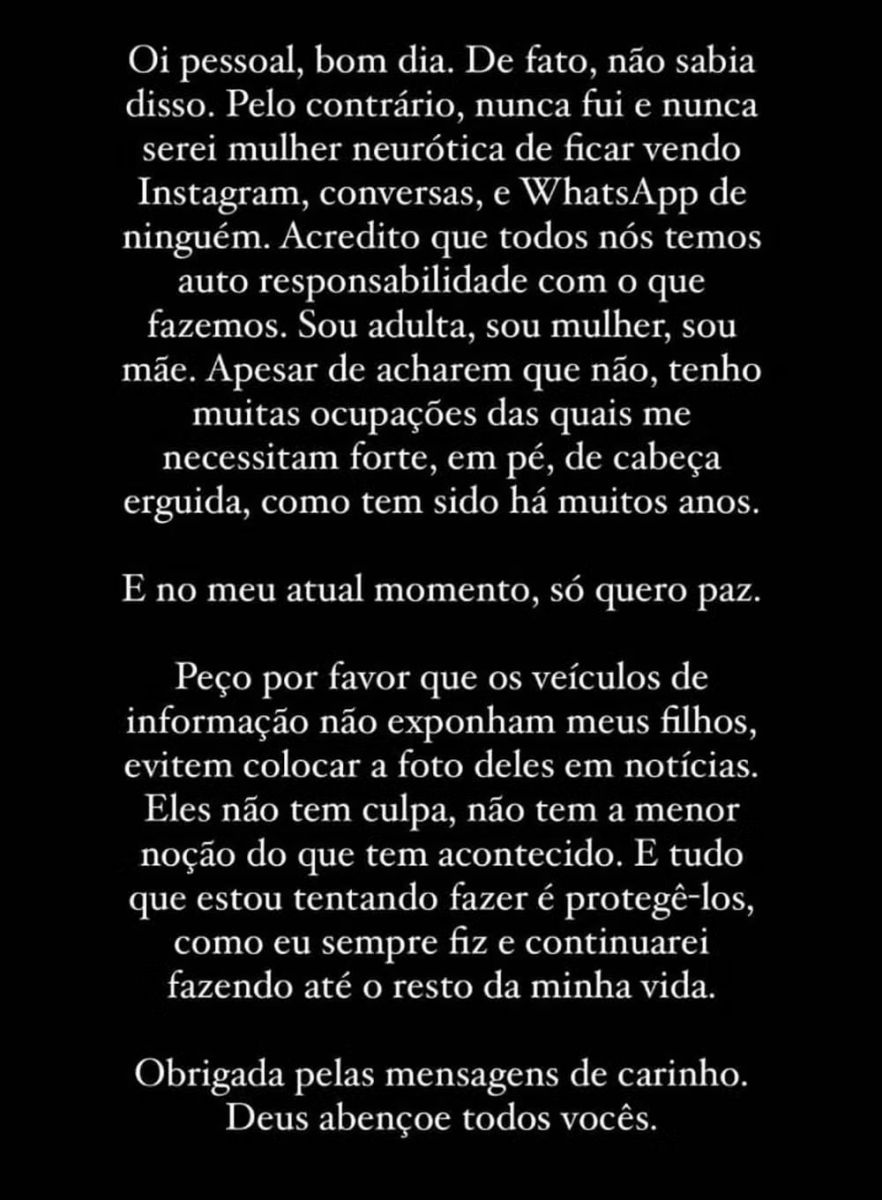 Isa Ranieri, ex-mulher de Everton Cebolinha, se pronunciou nas redes sociais após o jornal Extra noticiar uma traição por parte do jogador, com uma influenciadora, o que teria sido o real motivo do fim do casamento. Os dois estavam juntos há oito anos e têm três filhos.