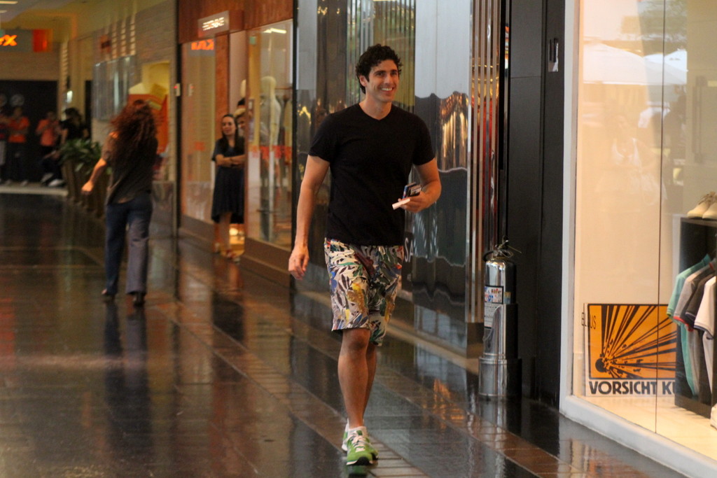 Durante um passeio pelo shopping no Rio de Janeiro neste sábado (26), Reynaldo Gianecchini foi abordado por uma fã que estava em uma loja, e entregou um bilhete para o ator. A mulher convresou com o galã, que continuou sua caminhada sorridente.