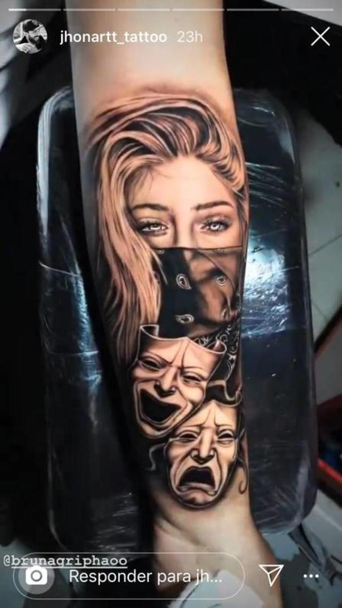 Um fã tatuou o rosto da atriz Bruna Griphao no braço e chocou a jovem.