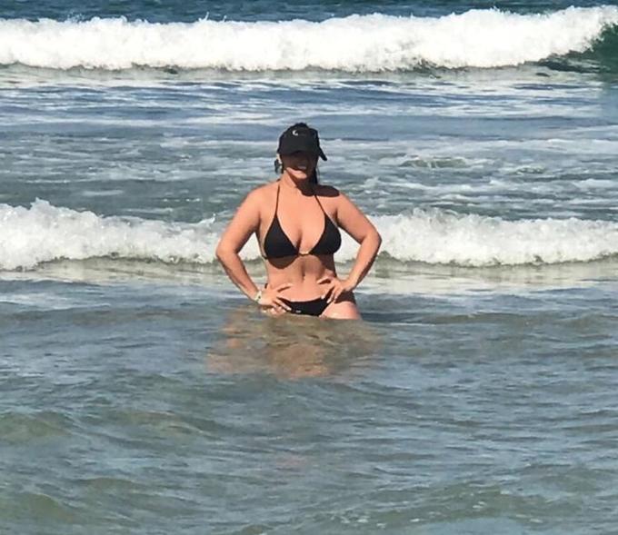 A apresentadora, que perdeu 25 quilos após recorrer a dieta e lipoaspiração, publicou fotos de biquíni em sua conta do Instagram e brincou com seu apelido dado por Marcelo Rezende: "Arraia fritando", escreveu.