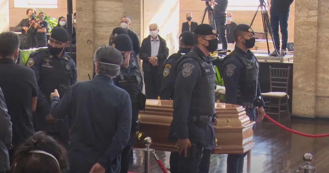 Familiares, entre eles o filho Tomás, de 15 anos, e amigos próximos puderam se despedir de Bruno na cerimônia restrita, antes do cortejo que ocorre em sequência, em carro aberto, pelas ruas da cidade de São Paulo para que admiradores e amigos possam prestar o último adeus ao político.