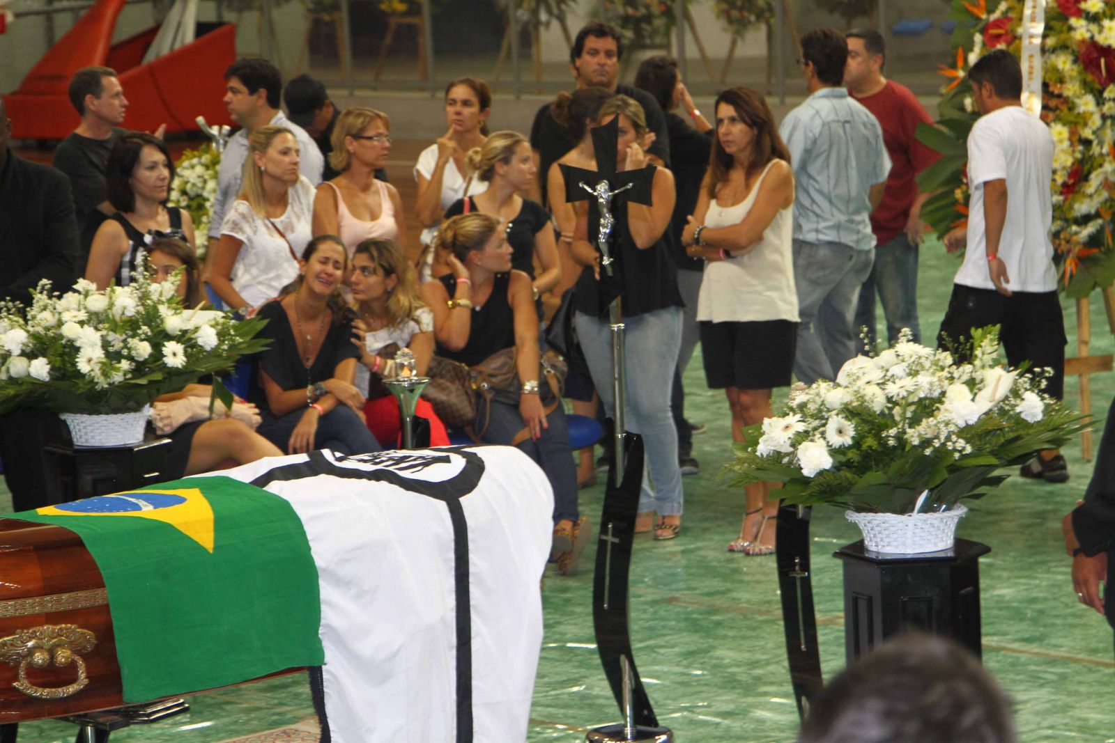 A família pediu duas horas para velar o corpo e logo em seguida foi liberado ao público que se aglomerava no ginásio da Arena Santos.