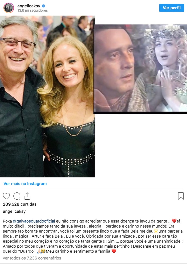 “Eu não consigo acreditar que essa doença te levou da gente . Tá muito difícil. Precisamos tanto da sua leveza , alegria, liberdade e carinho nesse mundo!! Era sempre tão bom te encontrar , você foi um presente lindo que a fada Bela me deu, uma parceria linda , mágica, Artur e fada Bela, Eu e você. Obrigada por sua amizade , por ser esse cara tão especial no meu coração e no coração de tanta gente”, escreveu a apresentadora Angélica.