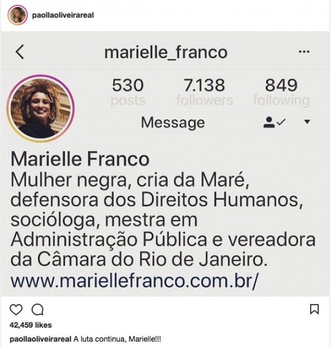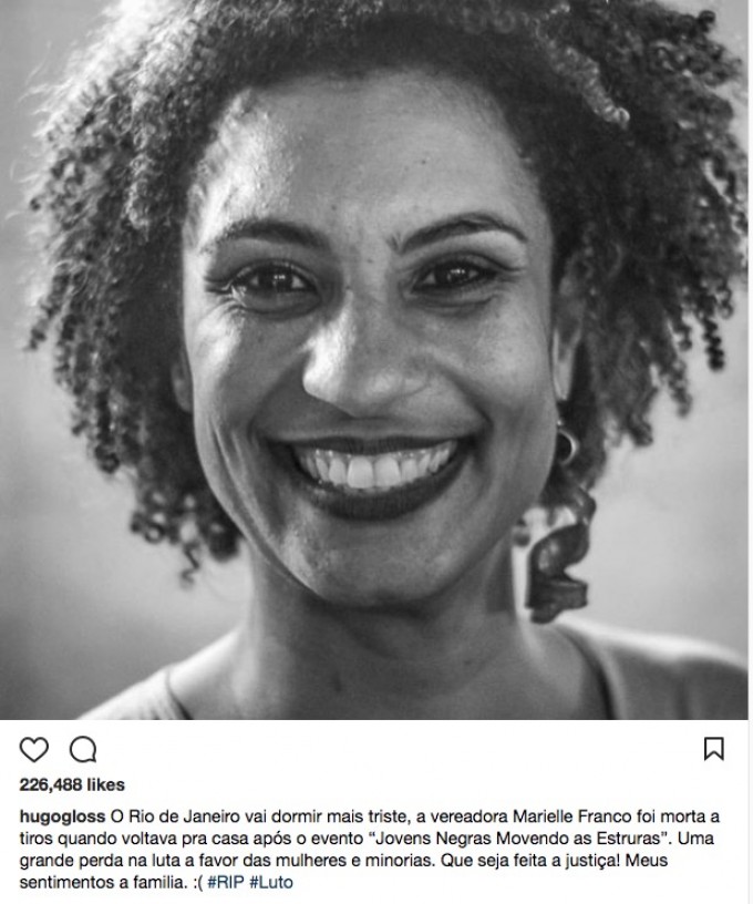 Marielle tem sido homenageada por anônimos e famosos nas redes sociais. Muitos pedindo justiça.