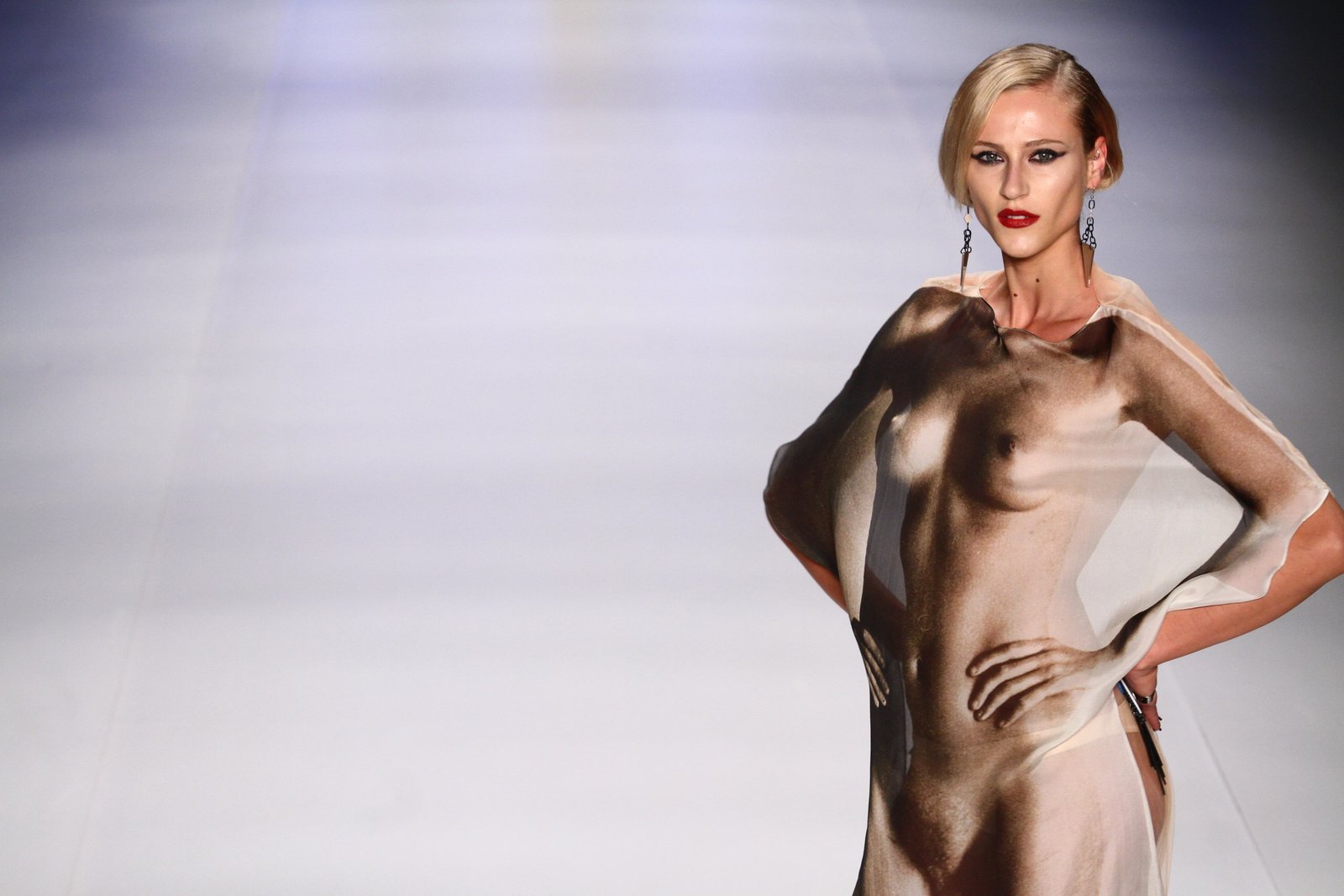 No último dia do Fashion Rio, que aconteceu nesta sexta-feira (19) na capital carioca, as grifes continuaram ousando e apostando na nudez das modelos. A marca de biquínis Triya trouxe peças de metal que deixavam os seios da modelo à mostra, e até apostou em estampas de seios e corpos nus. Já a 'Oestúdio' mostrou que a transparência continua em alta.