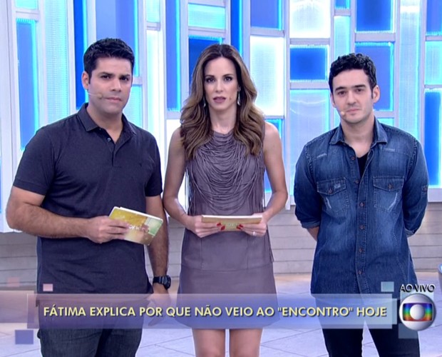 Fátima Bernardes teve de ser substituída por Ana Furtado na apresentação do Encontro nesta quinta-feira (19) após sofrer um sangramento no nariz durante a entrega do Prêmio Quem 2014, no Rio de Janeiro. Fátima explicou o motivo de sua ausência logo no início do programa, por telefone.
