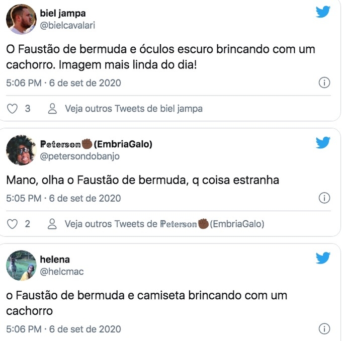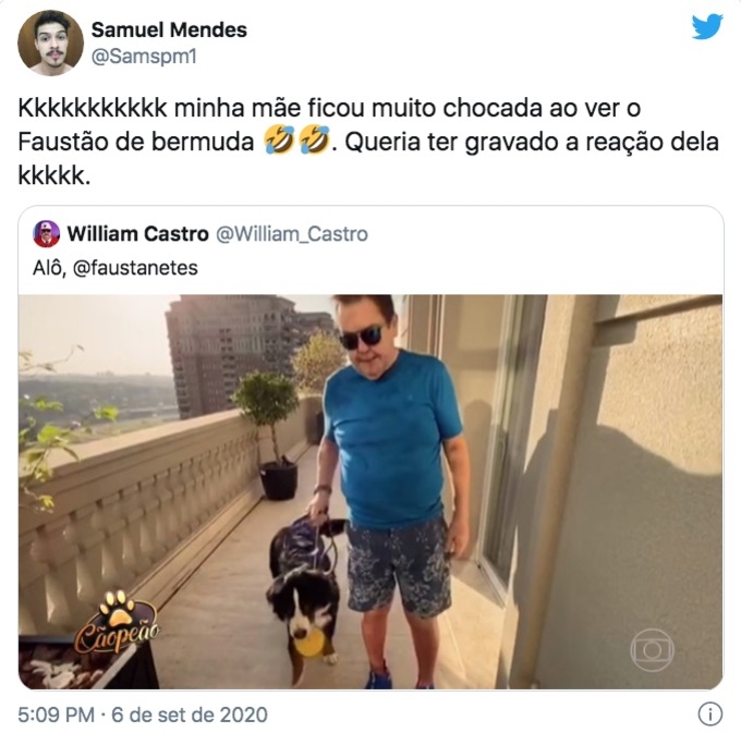 “kkkkkkkk minha mãe ficou muito chocada ao ver o Faustão de bermuda. Queria ter gravado a reação dela”, disse um internauta.