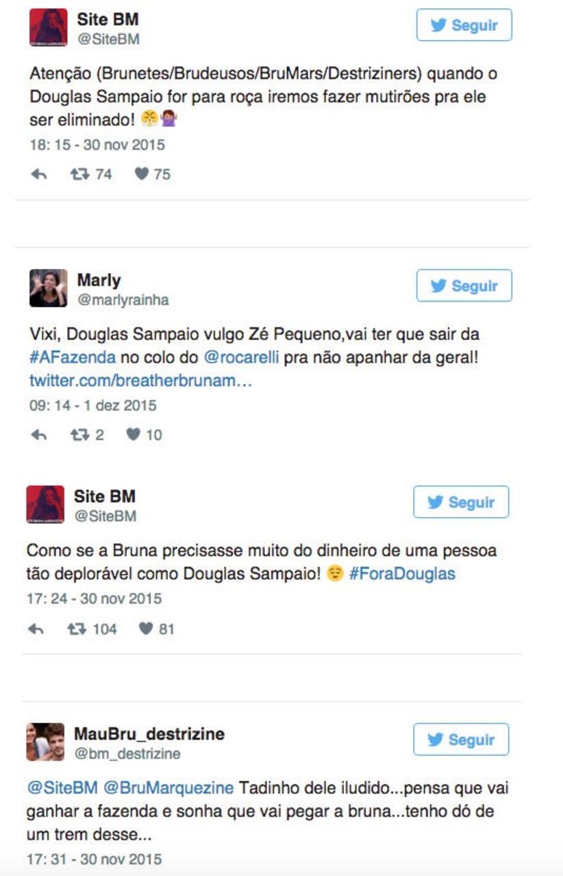 A Fazenda 8: Douglas Sampaio faz comentário maldoso sobre Bruna Marquezine