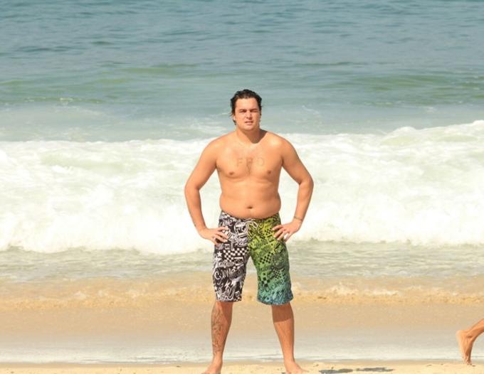 Felipe Dylon aproveitou o dia de sol para aproveitar uma praia em Ipanema, no Rio de Janeiro.