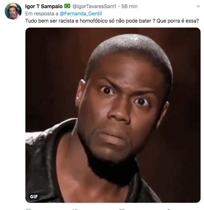 “Respeito quem acha um crime ter o beijo gay. Agora, não vai bater em quem beija, entendeu? [Respeito] quem infelizmente é racista. Agora, vai discriminar, bater, matar porque é de outra cor? Aí não.”