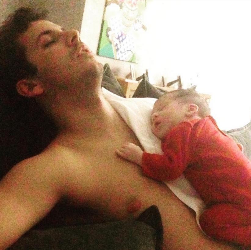 A jornalista mostrou uma foto do marido, Matheus Braga, com o bebê. "Flagra da mamãe no papai e no filhote! Dia intenso de trabalho, né filhão? Mas já acordamos, pensando o que? Dormir é pros fracos”, escreveu.