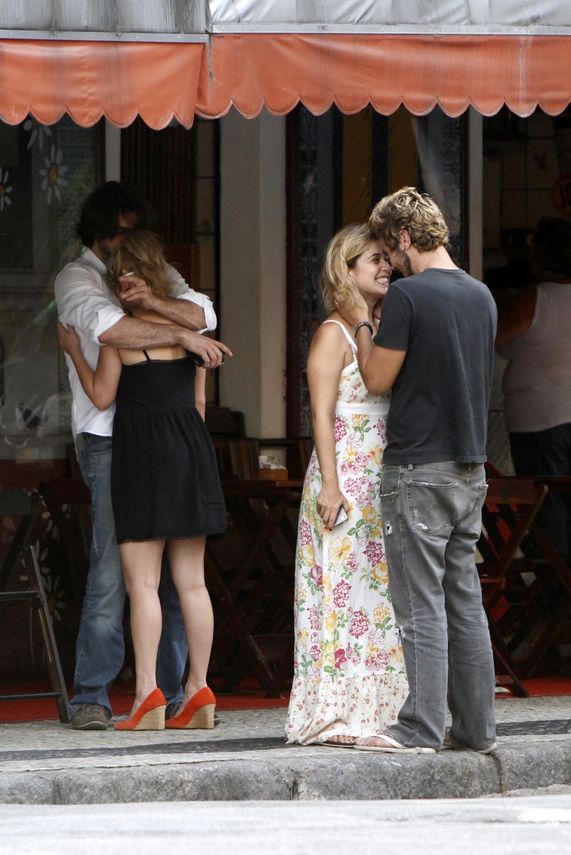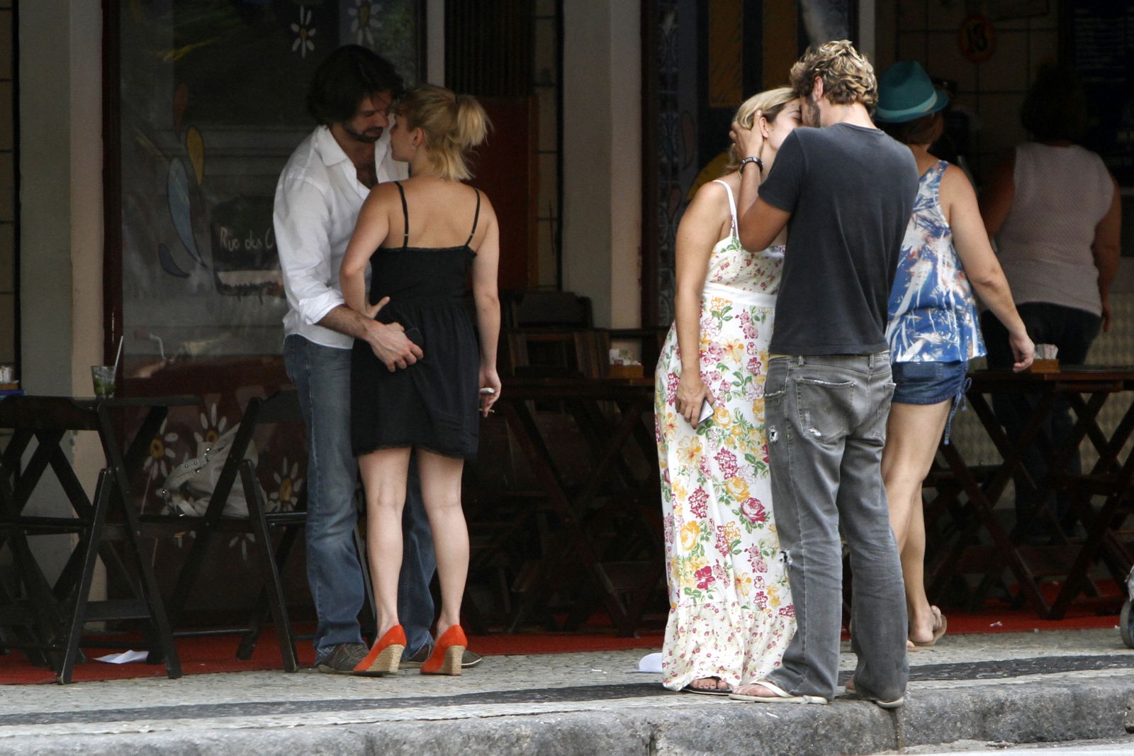 Em clima de muito romance, Paloma Duarte foi clicada com o namorado Bruno Ferrari aos beijos em um restaurante carioca. Ao lado da amiga, a também atriz Fernanda Nobre (que levou uma 'apalpada' indiscreta do namorado), Paloma recebeu muitos carinhos do ator, no encontro de casais.