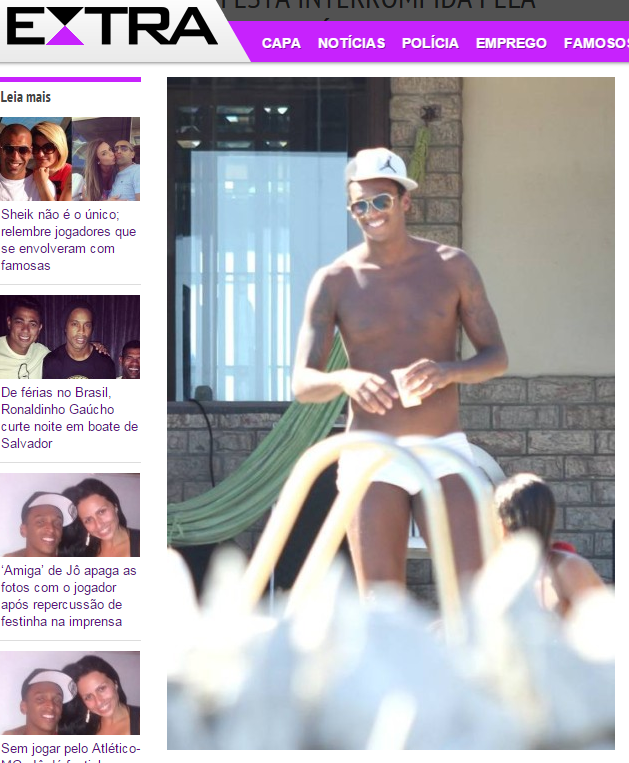 Jô está curtindo as férias em Búzios enquanto decide em qual clube vai jogar em 2015. Porém, na última terça-feira (30) a festa do atacante foi interrompida pela polícia, que foi acionada por uma vizinha incomodada pelo barulho na casa, acabando com a diversão do jogador e de seus convidados. As informações são do site ‘Extra’.