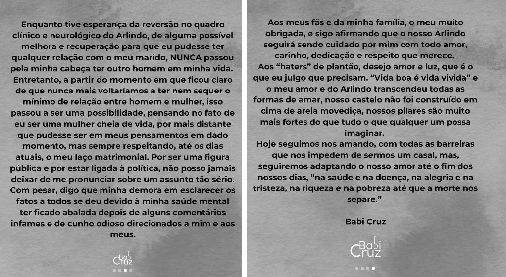 Ontem, Babi publicou uma nota oficial sobre a situação. Leia na íntegra abaixo:
