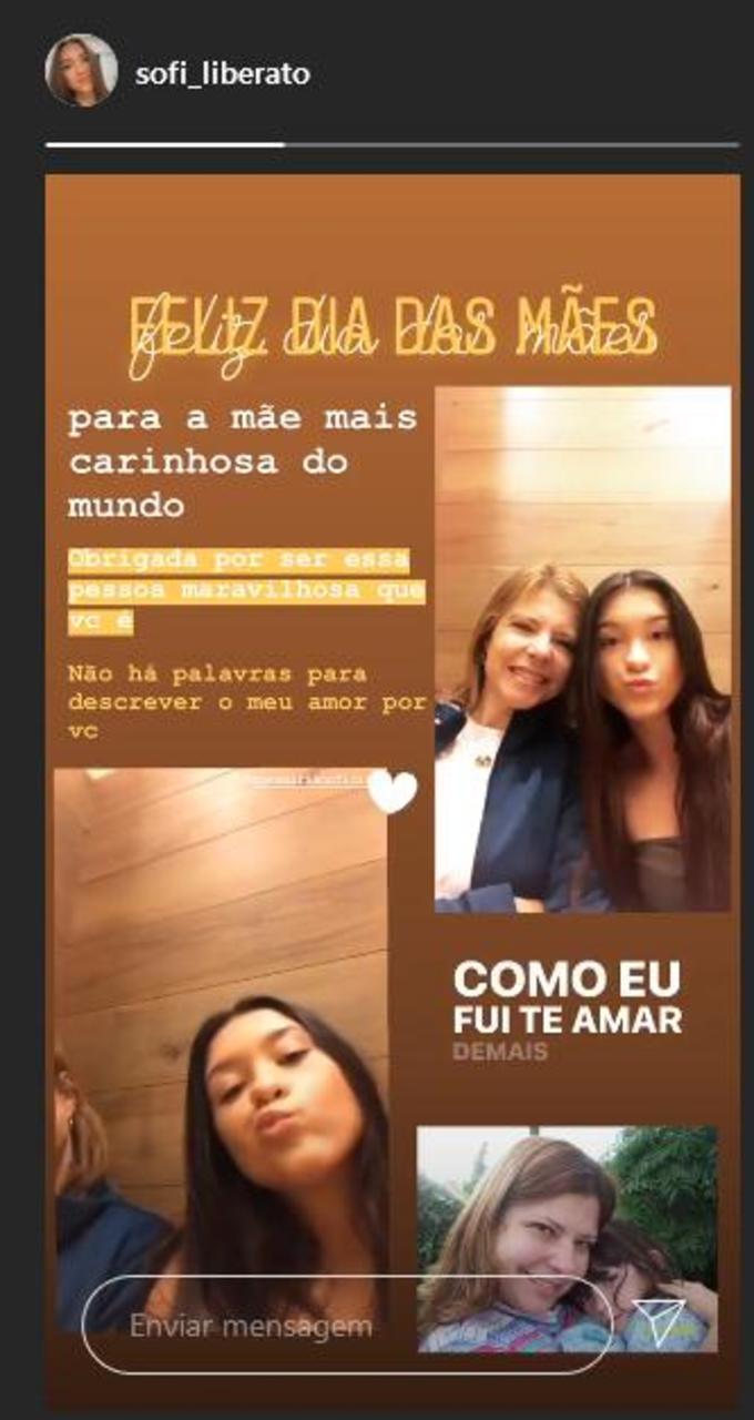 "Feliz Dia das Mães para a mãe mais carinhosa do mundo. Obrigada por ser essa pessoa maravilhosa que você é", escreveu a adolescente. "Não há palavras para descrever o meu amor por você", escreveu a adolescente de 16