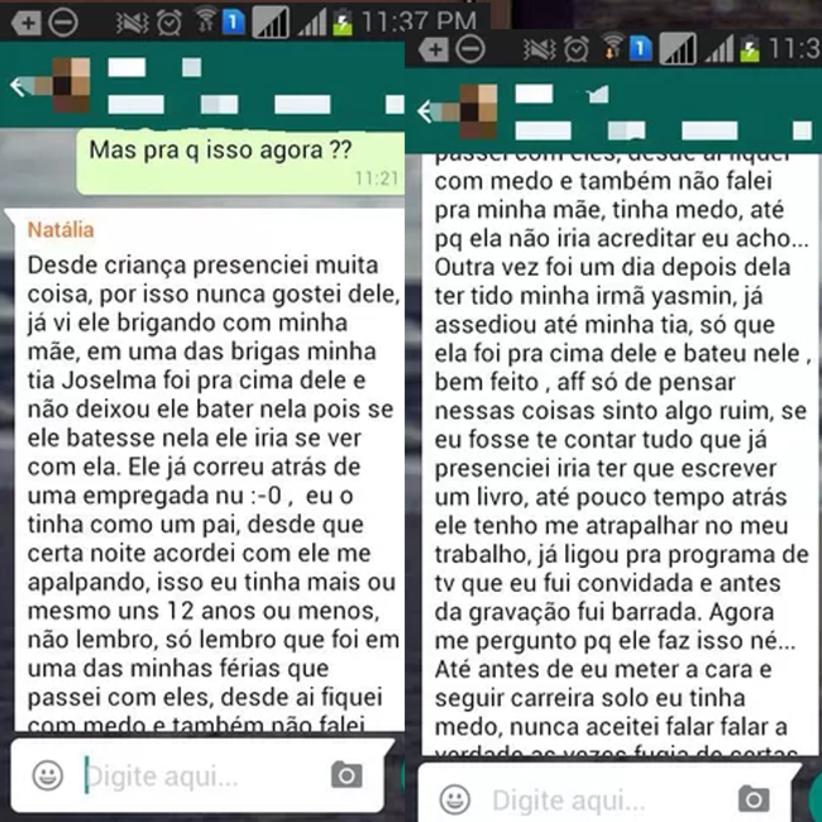 Natalia confirmou a veracidade das informações prestadas no WhatsApp. Joselma, irmã de Joelma, também revelou que o guitarrista chegou a mostrar suas partes íntimas para ela dentro de um carro.