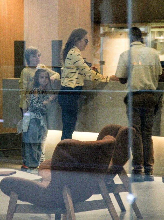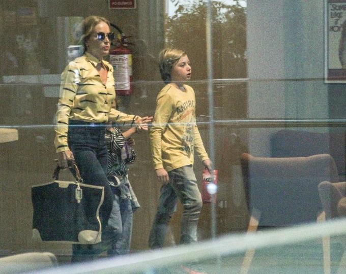 Angélica foi clicada em um shopping do Rio de Janeiro na companhia dos filhos, Eva e Benício, que sofreu há duas semanas um grave acidente.