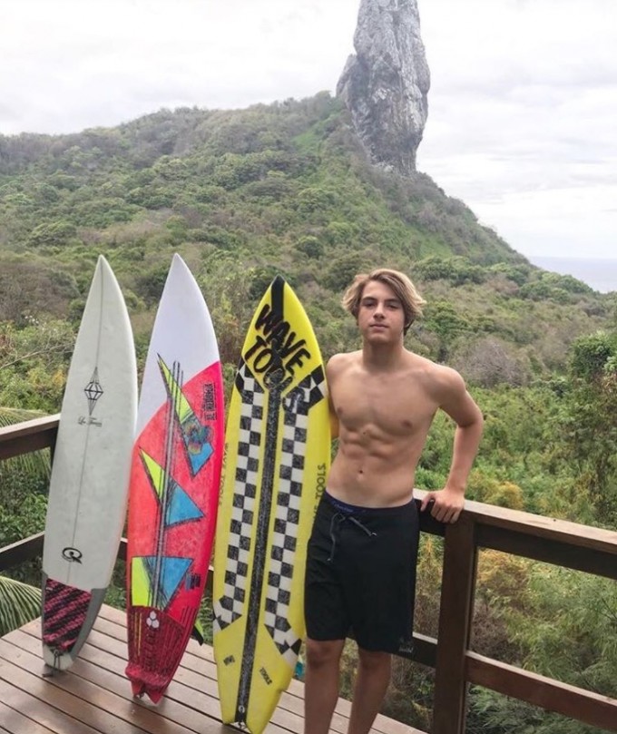 Em uma das fotos da viagem o que chamou atenção foi o corpo sarado do adolescente que já ostenta uma barriga tanquinho.