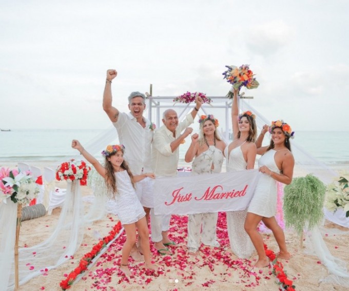 "Abençoados por nossas filhotas e meus pais. Foi tudo lindo, Ricardo Vargas (guia responsável pelo passeio). Inesquecível. Roberto Cohen (cerimonialista) que se cuide. Casamos de novo sim!!! Com direito a barquinho típico (long tail), músicas escolhidas, chuva de pétalas, plateia e brinde!", completou ela, com as hashtags: "Casamos de novo" e "Ainda caso de novo".