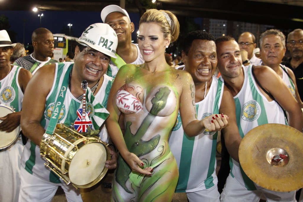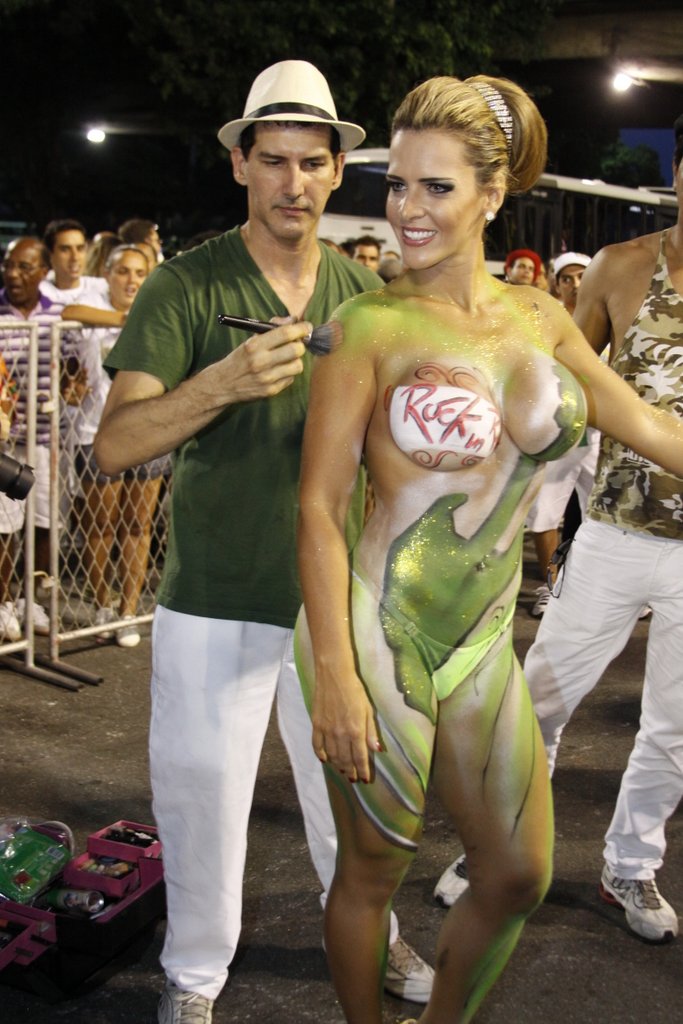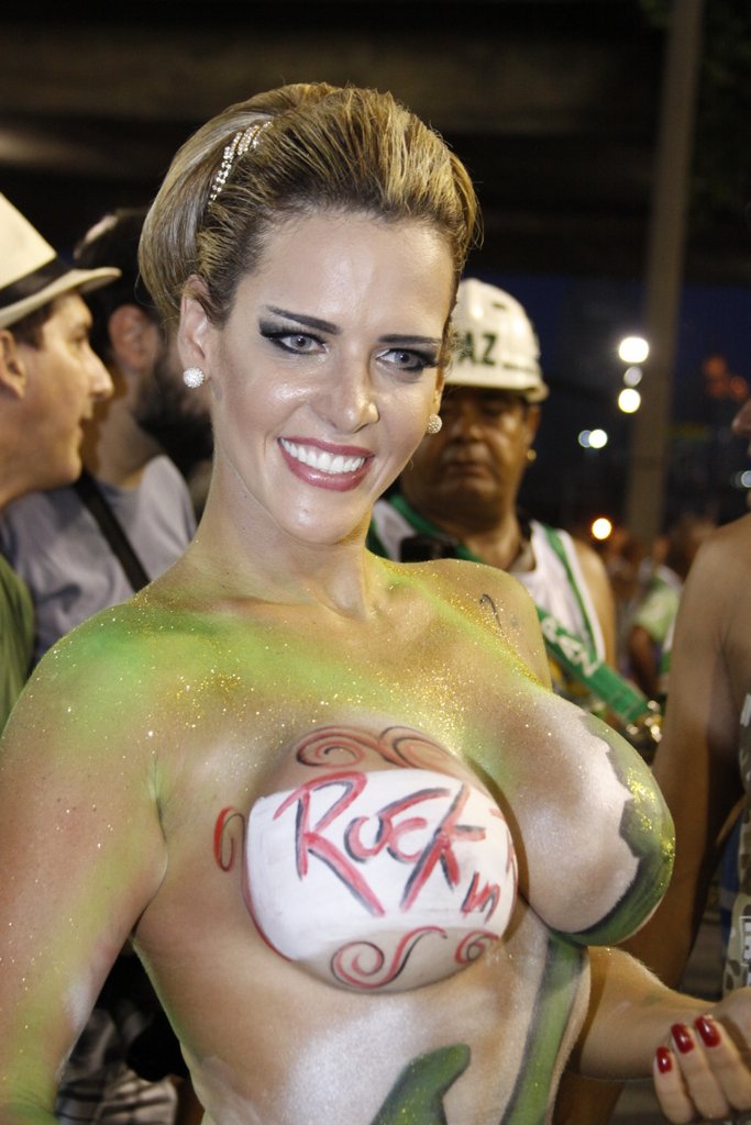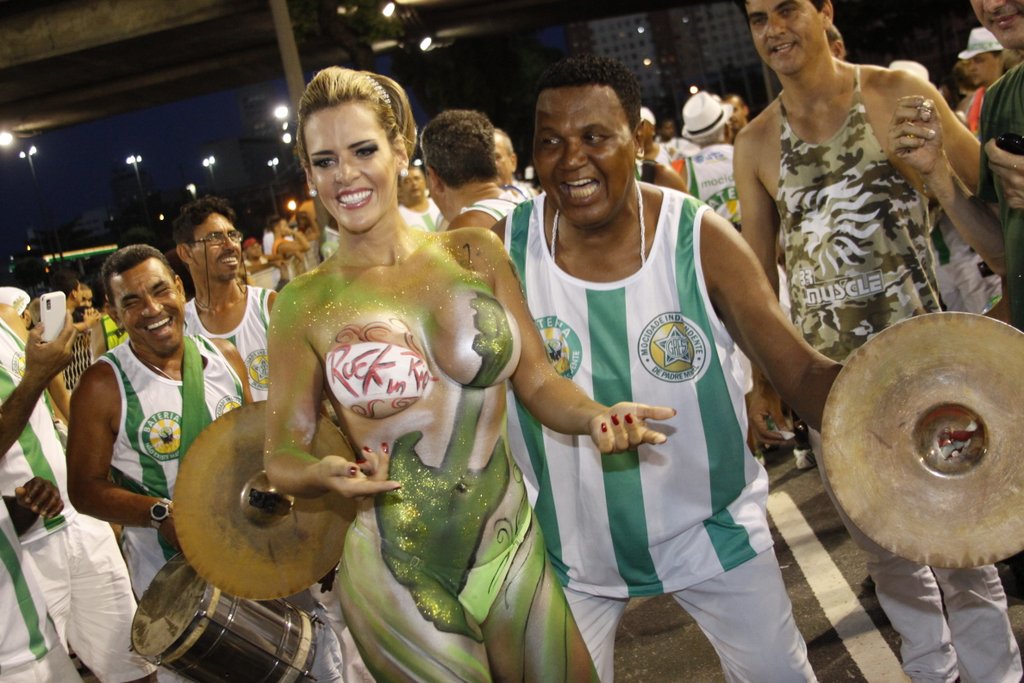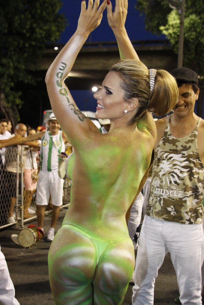 Denise Rocha, mais conhecida como "Furacão da CPI" após protagonizar um vídeo íntimo que vazou enquanto trabalhava no Senado como assessora e advogada, já fez um "esquenta" para o carnaval 2013 e ficou seminua usando apenas pintura corporal e uma micro calcinha para "cobrir" seus atributos generosos. A loira, que participa da Escola de Samba Mocidade de Padre MIguel, chamou atenção no ensaio técnico neste domingo.