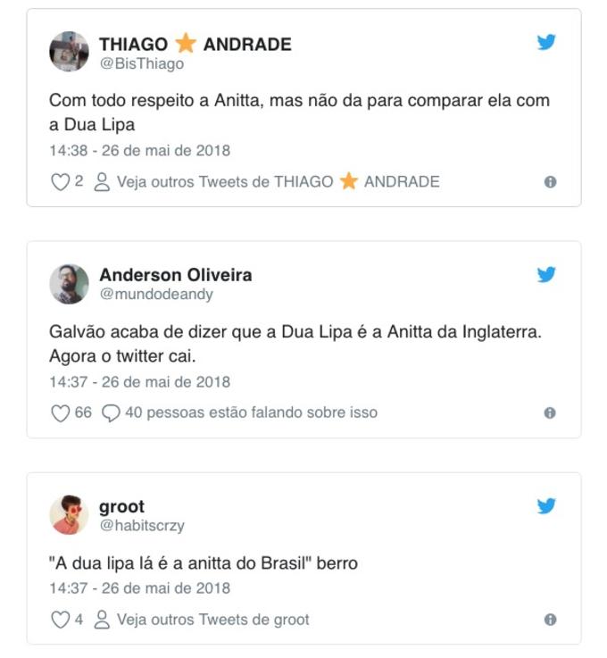 Após o show da cantora britânica e mundialmente famosa Dua Lipa, o narrador resolveu fazer uma comparação: "Ela é a Anitta da Inglaterra".