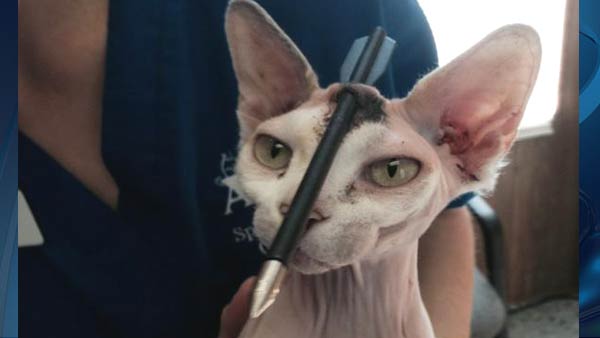 A lenda de que os gatos têm sete vidas pareceu mais real nesta semana, após Akila, da raça Sphynx sobreviver a uma flechada que atingiu o meio da sua testa.
