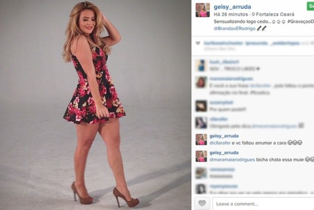 Geisy Arruda perdeu a cabeça e deu uma 'patada' em uma internauta depois que a mulher criticou outra seguidora por escrever sem pontuação.
