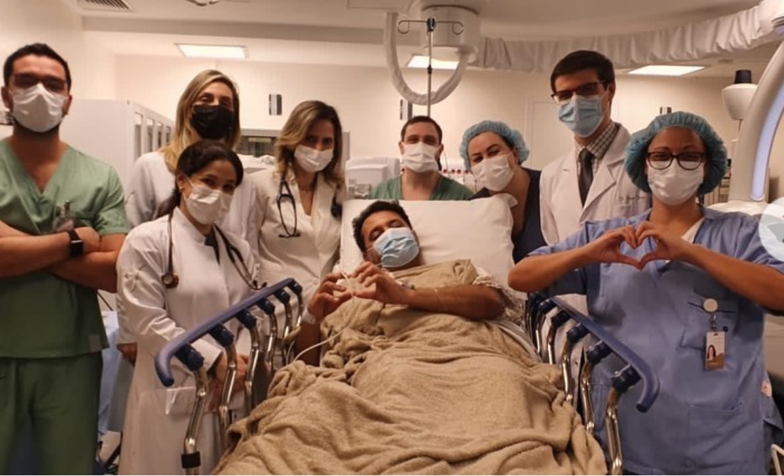 O apresentador passou 22 dias internado com Covid-19 em fevereiro deste ano, após a alta, precisou fazer fisioterapia para recuperar completamente os movimentos da perna direita.