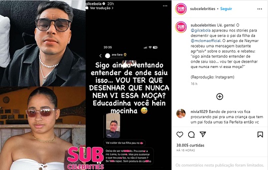 Uma internauta xingou o influenciador e pediu que ele assumisse a criança. No entanto, Gil negou a paternidade e afirmou que não conhece Loma.