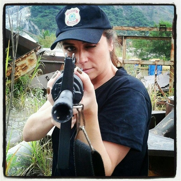 Interpretando a delegada Helô , em " Salve Jorge " (TV Globo), Giovanna Antonelli posou com uma arma e publicou no Instagram. Na novela das nove, a delegada que tenta desvendar o sumiço de Morena, treina para se tornar uma agente da Polícia Federal.