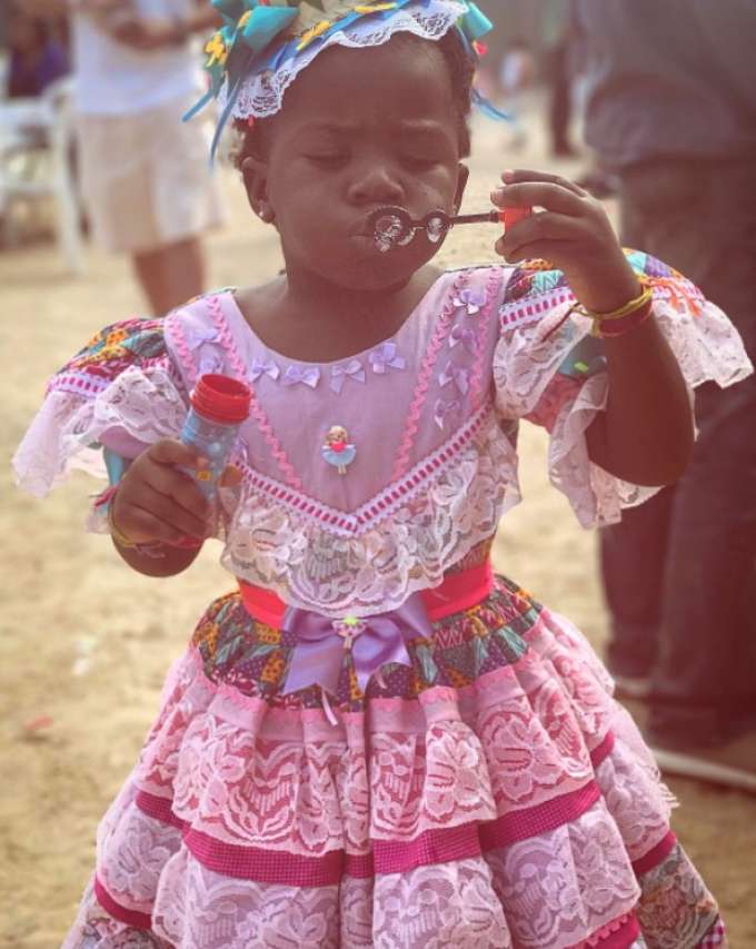 Nas imagens, a pequena aparece vestida a caráter para uma festa junina. Na legenda, a atriz comemorou a primeira ida da herdeira a uma festa típica de São João. "Primeira festa junina da minha boneca!!! E que boneeeeeca que ela ficou de caipira meu Deus!!! Não aguento!!!", se derreteu Gio.