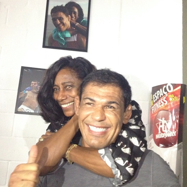 Glória Maria publicou nesta quarta-feira (20), a foto do momento em que aplicou um golpe 'mata-leão' no lutador de MMA, Minotauro , um dos ídolos do esporte no Brasil e no mundo.