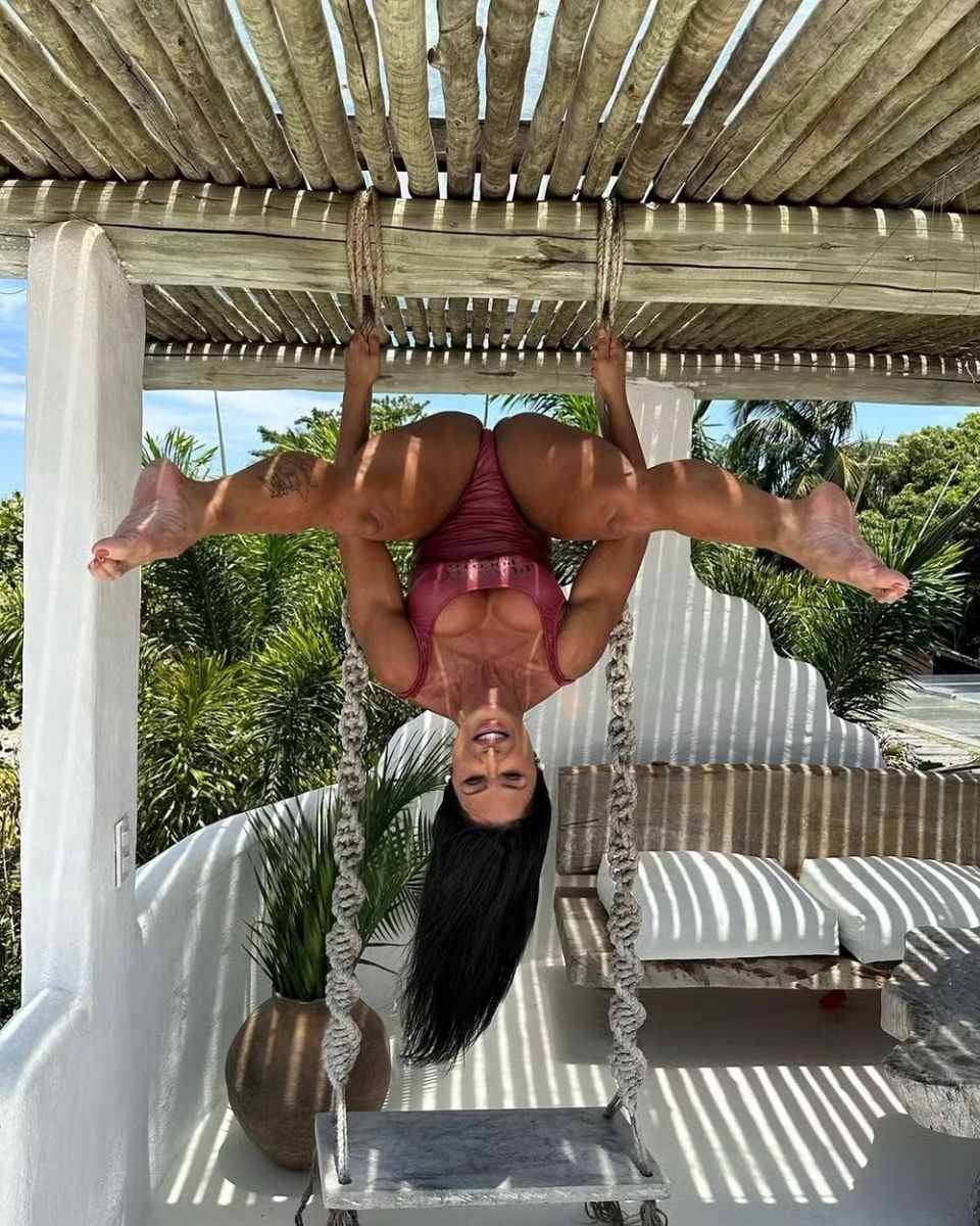 A modelo fitness Gracyanne Barbosa, de 40 anos, arrancou suspiros de seguidores ao compartilhar fotos usando um maiô ultra cavado e fazendo a posição ‘perereca invertida’, nesta sexta-feira (24) . A influenciadora fez poses também na beira da piscina.