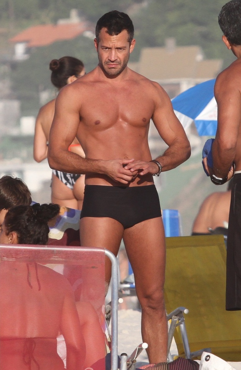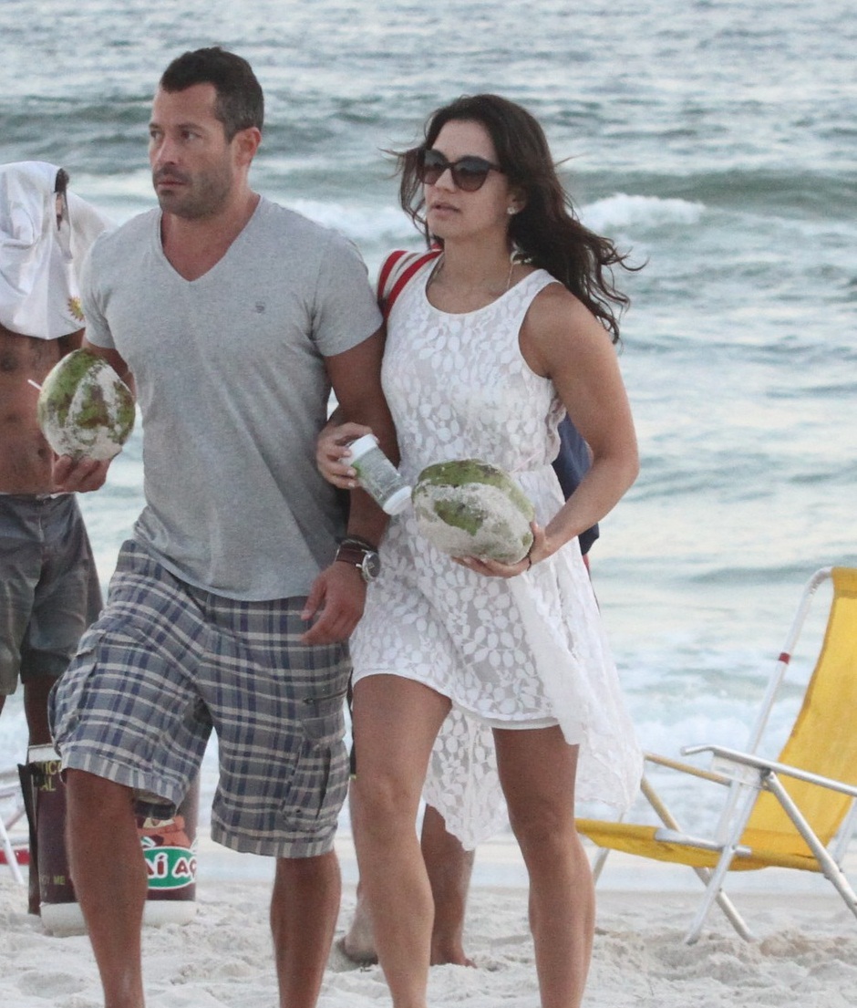 Malvino Salvador aproveitou o final de semana para curtir a praia da Barra da Tijuca, no Rio de Janeiro, com a namorada Kyra Gracie , que está grávida.